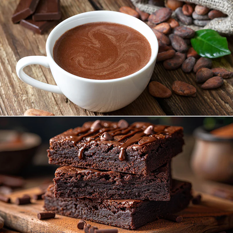 - Heißes Kakao-Getränk: Gemahlen oder in roher Form als Basis für heiße Schokoladengetränke.